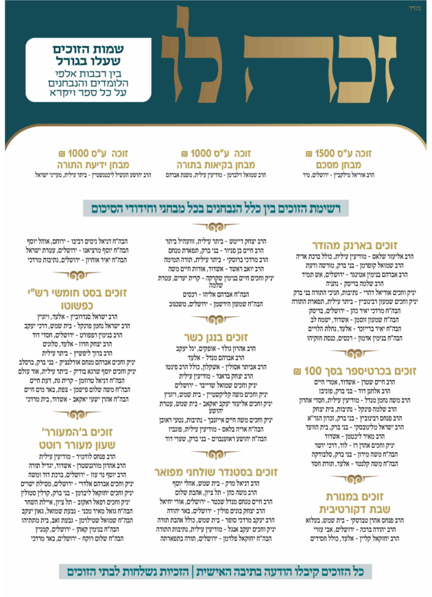 ★ זוכים במבחן שבועי ע"ס 500 ₪ הבה"ח שלמה הרשלר, ח"ק מ"ע | בני ברק הרב משה שמאי רוזנוולד, גור | ירושלים